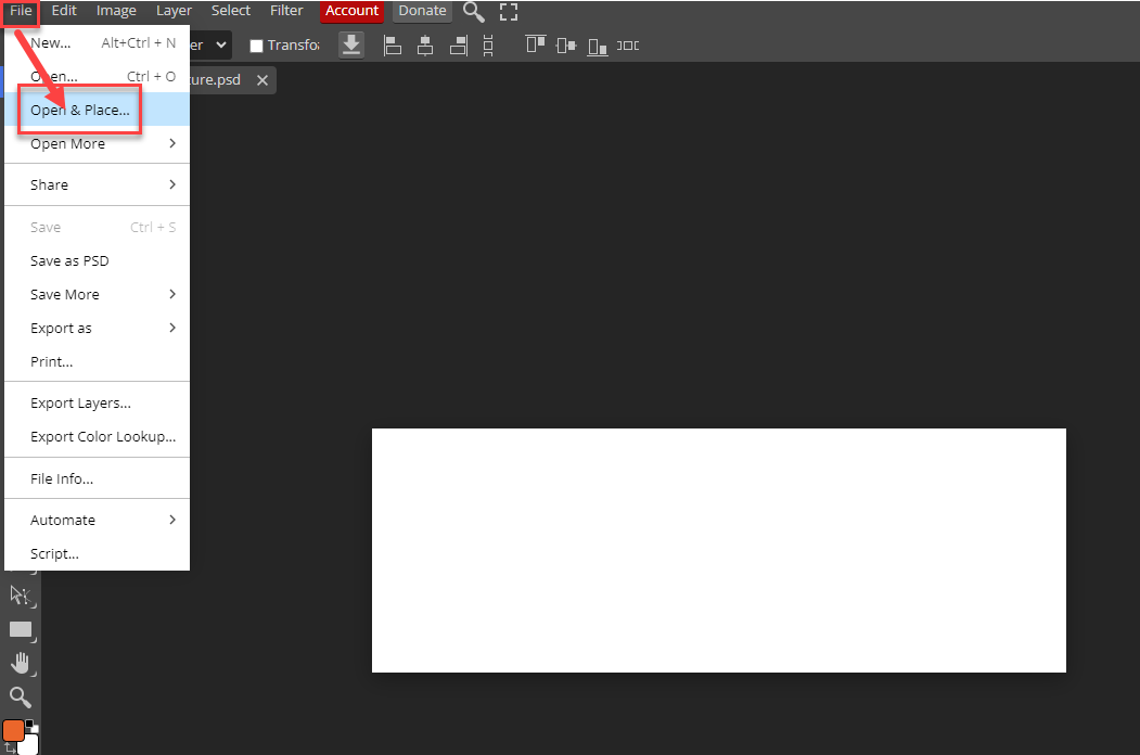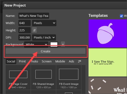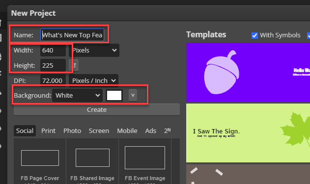 If you do not have access to Adobe Photoshop, there are several free online resources that are available and easy to use. One of those tools is called Photopea. Below you will find the instructions on how to create an image in the correct size for the What's New -- Top Feature article (640px x 225px). For a list of required image size and formats, visit this article.