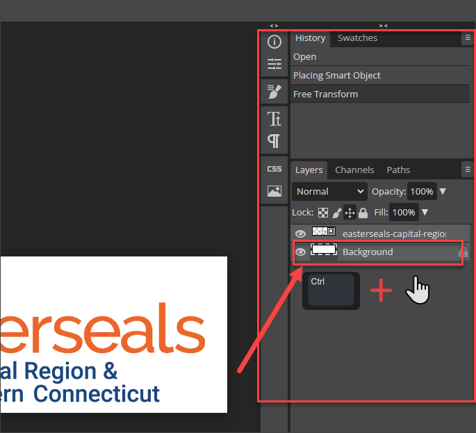 - Next, from the right-side panel (under Layers), click CTRL and then click the Background layer (the other layer should already be highlighted)