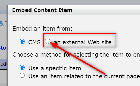 - From the dropdown, select Embedded Item and click OK