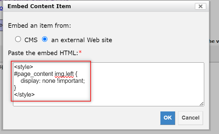 - Copy and paste the following CSS into the text box:
