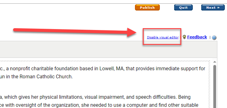 - Click Disable visual editor