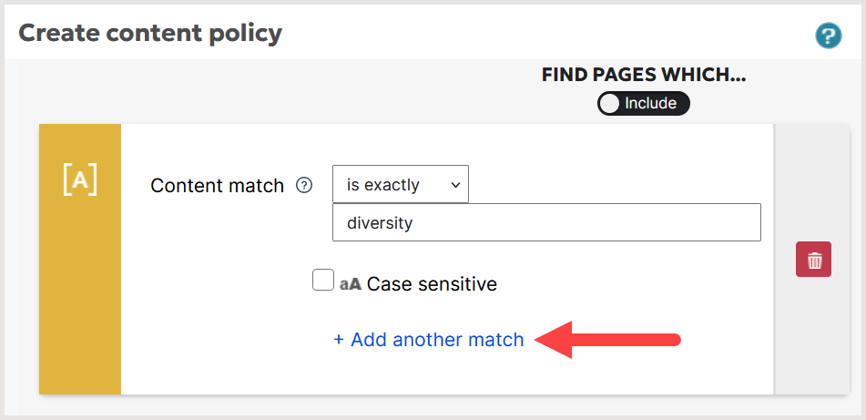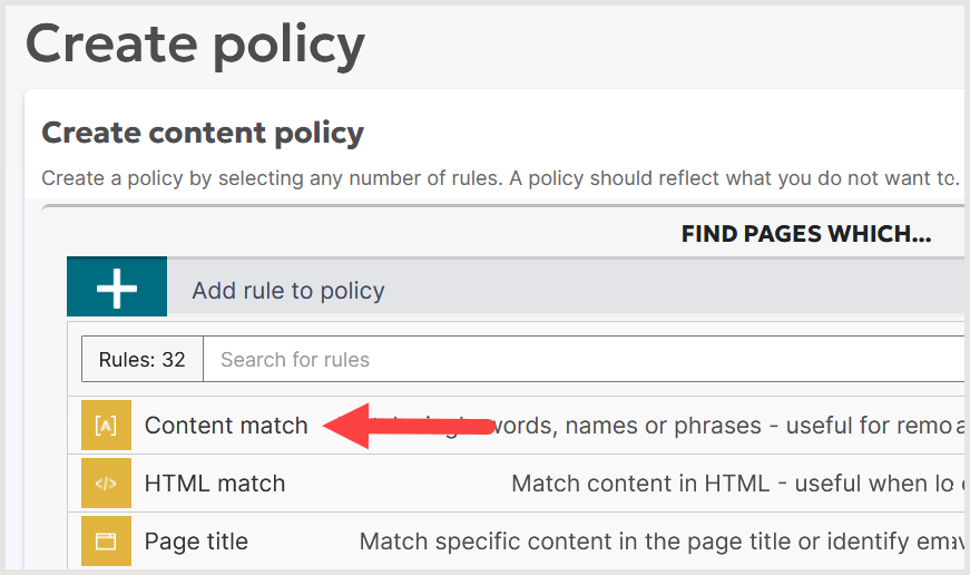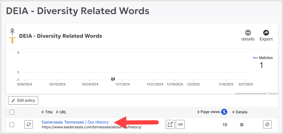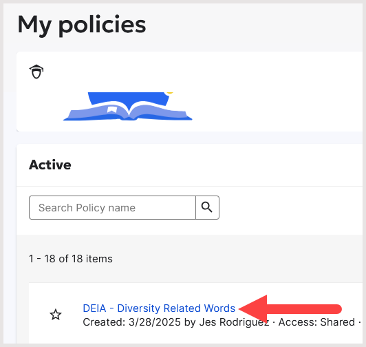 - To view the list of pages that contain one or all of the words you listed, click the title of your policy from the Active list section