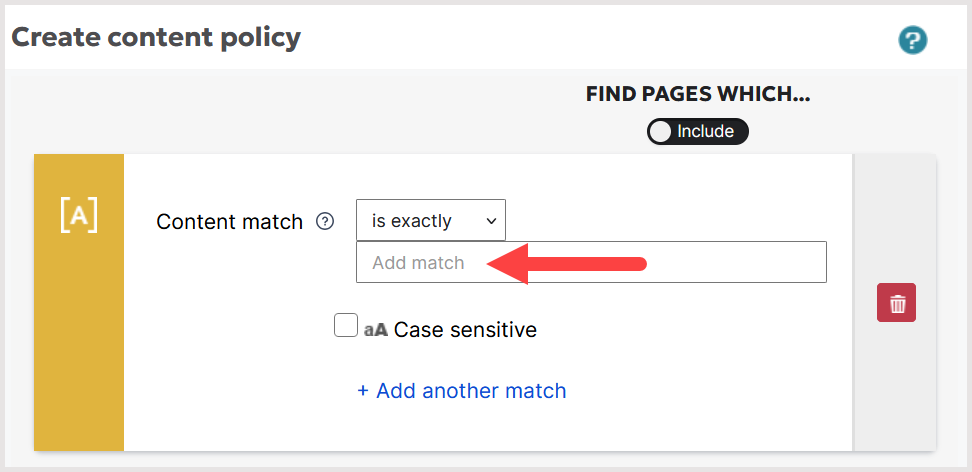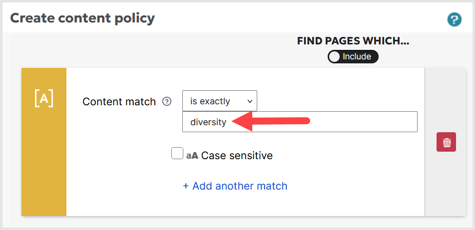 - Once you have finished adding words, scroll down to the Policy name field and enter a name