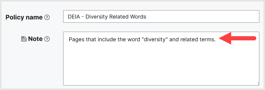 - Optional: Enter a brief note in the Note field explaining the purpose of the policy