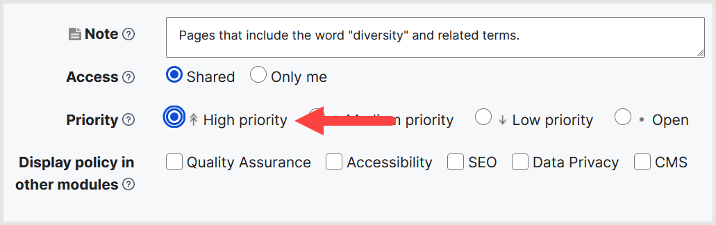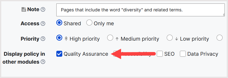 - Optional: Check a module box to make policies visible in other modules, such as Quality Assurance